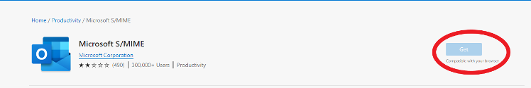 Once on the web page, click Get to add the Microsoft S/MIME control to Edge