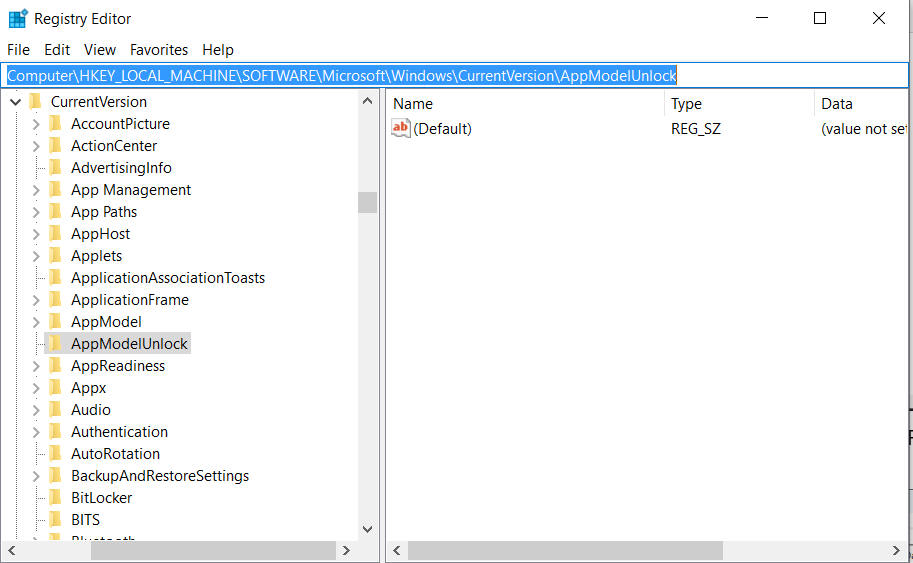 STEP 4a: Now navigate to the following location: HKEY Local Machine -> Software -> Microsoft -> Windows -> CurrentVersion -> AppModelUnlock (HKEY_LOCAL_MACHINE\SOFTWARE\Microsoft\Windows\CurrentVersion\AppModelUnlock)