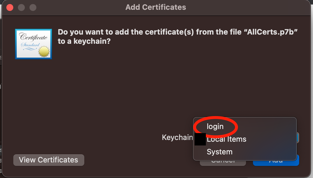 Please know... IF You have any DoD certificates already located in your keychain access, please delete them prior to running the AllCerts.p7b file below.